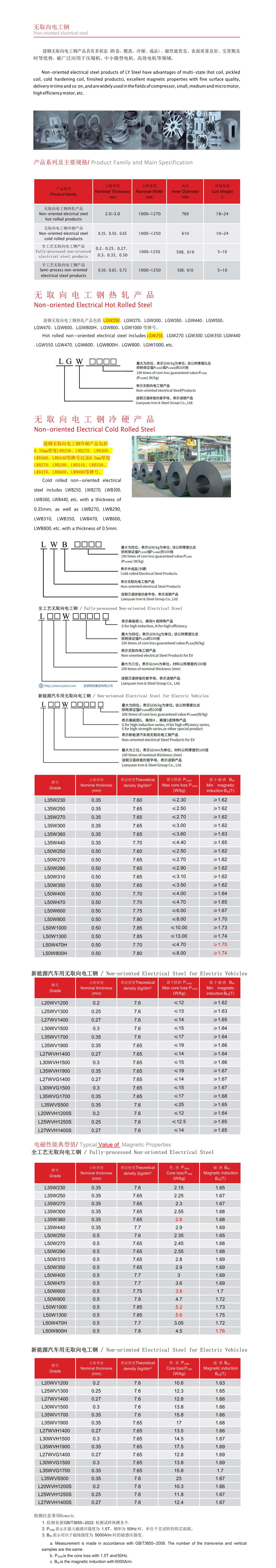 可供应普通取向硅钢热轧 / 酸洗卷 / 冷硬卷原料及高磁感取向硅钢热轧卷原料, 主要牌号为 LGQX-6 和 LGQX- 1,可以根据客户要求进行订制生产,表面、边部质量、冷硬卷厚度精度好,被广泛应用 于各类变压器、大型电机和电抗器等。