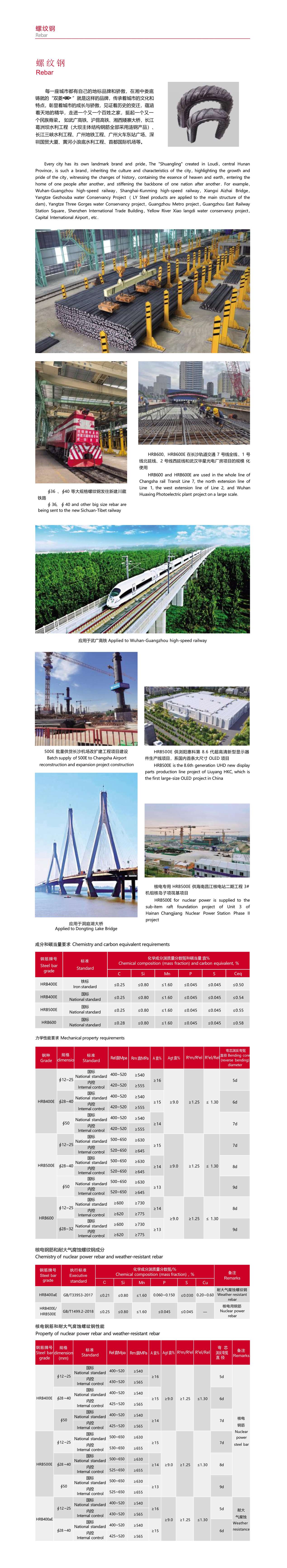 应用于:武广高铁、沪昆高铁、湘西矮寨大桥,长江葛洲坝水利工程(大坝主体结构钢筋全部采用本产品)、长江三峡水利工程、广州地铁工程、广州火车东站广场、深圳国贸大厦、黄河小浪底水利工程、首都国际机场等。